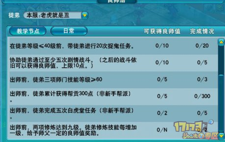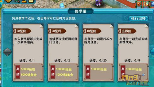 这个是徒弟的修学录,跟完成20个师门任务获得额外经验和储备金类似。