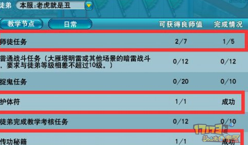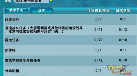 日常任务里,只有一项需要徒弟主动去完成,不过单纯是刷师徒任务的话,估计就9点良师值比较好拿了。这个师徒任务完成一轮就获得2点良师值。护体符与传功秘籍、召唤兽符需要徒弟主动领取,才会把良师值发放给你。普通任务战斗那个,我175大龙表示也是虚弱的,看来策划还要来个防刷....