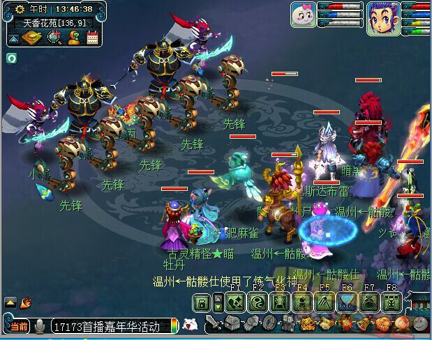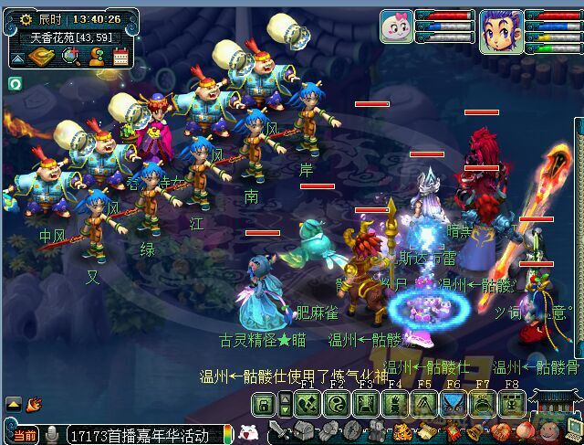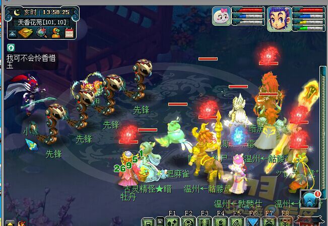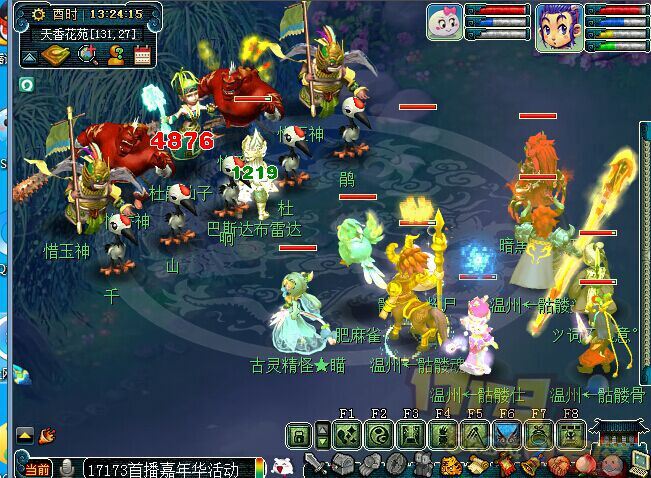 这里的怪都会集中打这个叫牡丹的花妖,我是174的队伍,这个花妖估计有3-4W的血