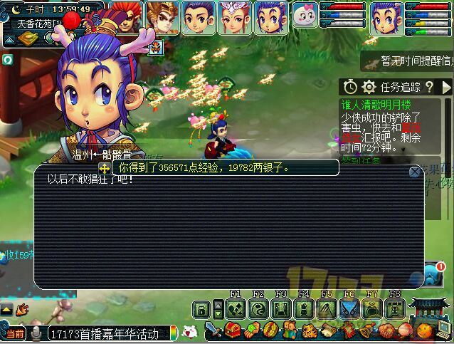 答:这是个刷经验的活动。环式任务我带了40轮队长抽奖十几个宝石,其他都是经验。活动额外获得奖励基本都是宝石,强化,金银锦盒。而且几率较低。副本任务一样。都是一些经验,物品奖励忽略不计。挑战难度过高。我这一组号杀不过去。怪有驱鬼。难度较大 >>详细