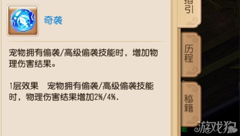 奇袭的作用:宠物拥有偷袭/高级偷袭技能时,增加物理伤害结果。
