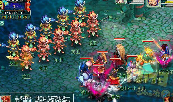 就这样灭队了,吸取教训就是这里应该先杀前排,记住,一定要杀前排。因为后排杀完了前面的龙卫无限翻江倒海,还有个怪会控尸,所以我被团灭了