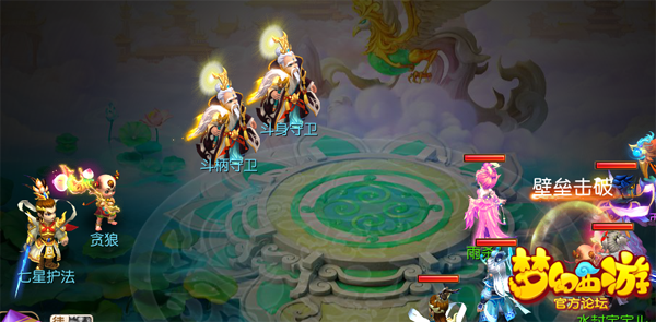 过关思路:怪从上到下固定顺位为DF/FC,PT,哪吒自带技能,DT,ST/LG。此关控制PT是重点,怪普遍都皮糙肉厚,控制不了PT的话,很难杀死其他,DT还会吸血。其次最上和最下位置的怪门派是随机的,上面有提到,如果是出现了FC,就比价难过了。还有重点是这关要把小白龙换成北海龙太子噢,北海的技能是打气血上限的。