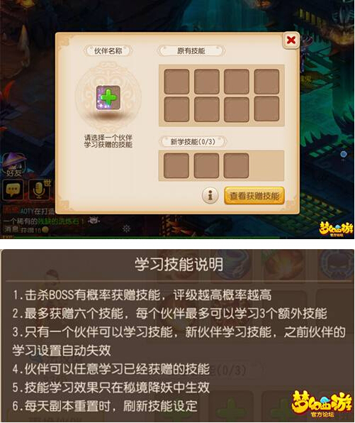 (2)玩家只可以给一个伙伴学习获赠技能,一个伙伴最多可学习3个获赠技能。