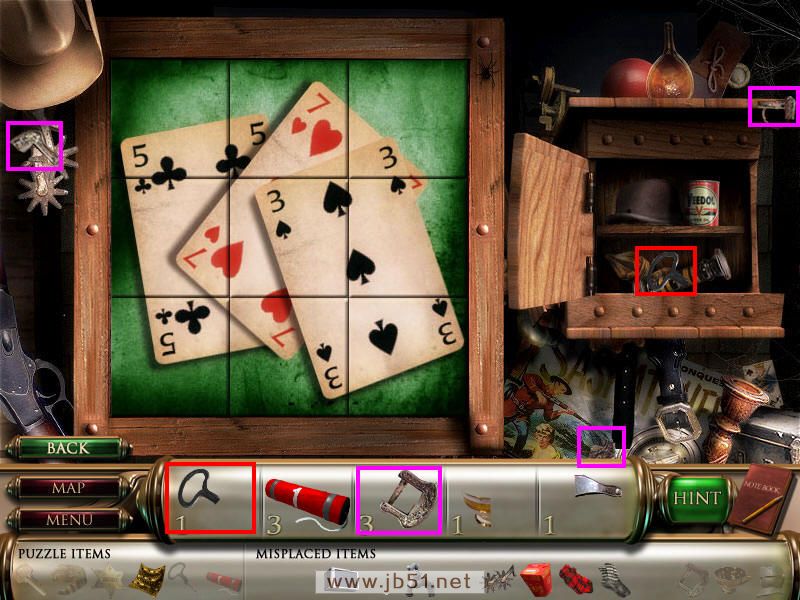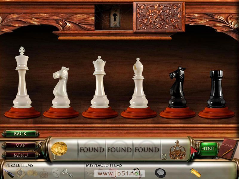 把拼图拼好后,右边柜子里得到钥匙的最后一个部分,然后找齐物品3。图3.41