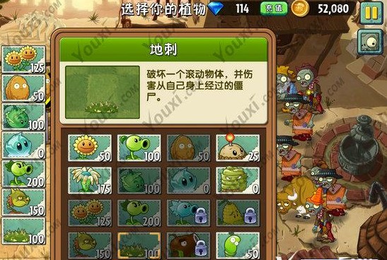 这一关我们只需要用到4株植物:火龙草,孪生向日葵,地刺以及冰冻生菜。(双重射手和卷心菜关键时刻再使用)