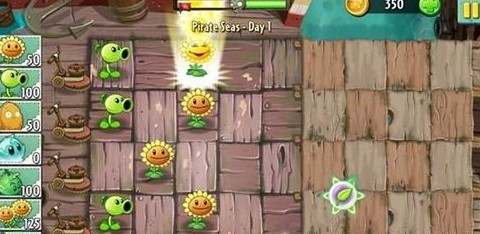 不仅新增了一些植物,还将之前的植物进行了重新定义,大家看,上图中可爱的向日葵貌似达到了一个最高状态,也可以算是它的一个大招哦!瞬间可以生产出很多的太阳,豌豆也是有大招的哦!就等大家自己去尝试了。