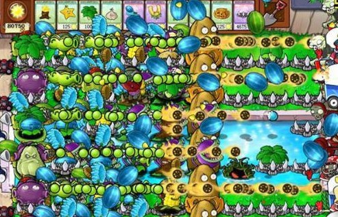 植物大战僵尸的最高境界~混乱的场景,不过总感觉像是开了作弊器