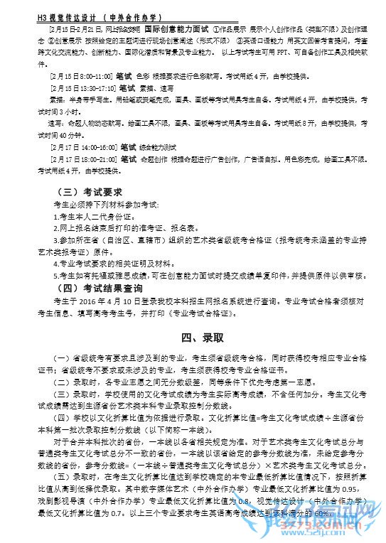 中国传媒大学2016年中外合作办学艺术类本科招生简章