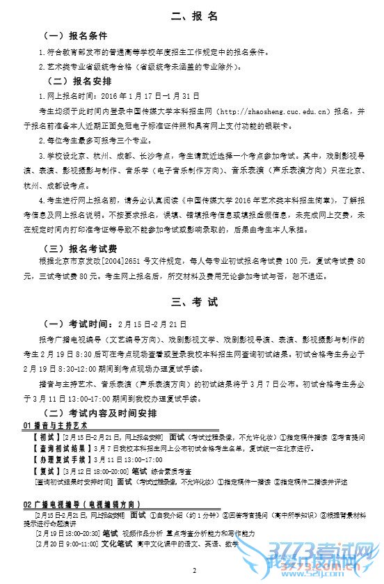 1.网上报名时间:2016年1月17日-1月31日考生均须于此时间内登录中国传媒大学本科招生网(http://zhaosheng.cuc.edu.cn)报名,并于报名前准备本人近期正面免冠电子标准证件照和具有网上支付功能的银联卡。