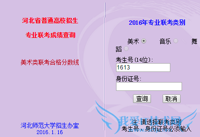 2016河北美术联考成绩查询入口:http://zsjy.hebtu.edu.cn/zhaosheng/ym2016/index.ht ...