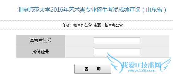 山东省曲阜师范大学2016艺术类校考成绩查询入口2016年山东省曲阜师范大学艺术类校考成绩是在网上查询的,考生们需要从现在起登录山东省曲阜师范大学本科大学招生网(http://www.qfnuzsb.com/cx/2016yscjcx/default.asp)查询自己的艺术类校考成绩了。山东省曲阜师范大学2016艺术类校考成绩查询入口:http://www.qfnuzsb.com/cx/2016yscjcx/default.asp