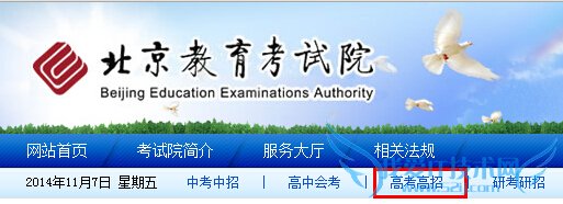 2. 进入北京教育考试院网站的“高考高招”页面;