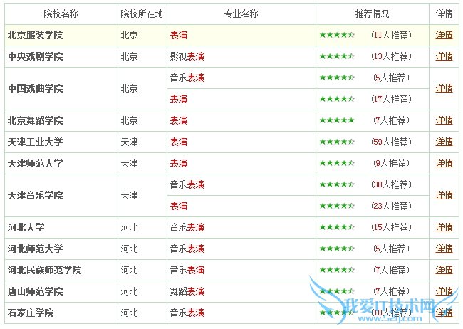 推荐专业源自高校学生实名推荐数据。当前累计投票数量超过270万人次。通过实名注册的高年级学生或毕业生,根据本校各专业办学情况进行投票,推荐优势专业或特色专业。下图仅展示了部分高校表演专业推荐情况,星号为推荐指数。点击图片可查看更多专业推荐数据。