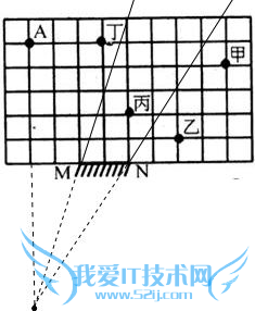 问题5:如图所示,暗室中A点放一支燃烧的蜡烛,墙壁上有一面平面镜MN.室中甲、乙、丙、丁四个同学中能通过平面镜看到烛焰的是______.[物理科目]