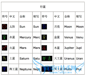 在黄道十二宫中,通过行星符号对应的星宫来确定,比如下图:
