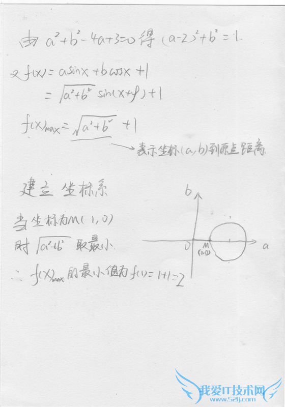 这是理科的第8题.先把a^2+b^2-4a+3=0整理成圆心为(2,0)半径为1的圆的方程.晕死,我表达不出来,好多符号不知怎么打.给你弄个手写版的~~