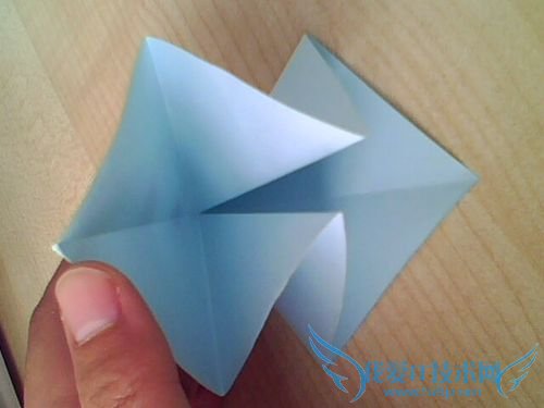 5.一般的纸鹤到此就接近完成了.我的这个还有进一步美化、加工.