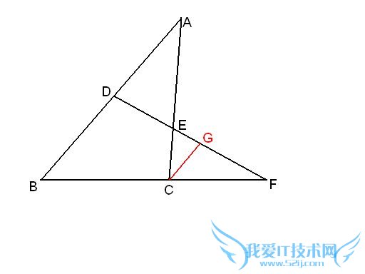CG‖DA,则△ADE∽△CGE,得AE/EC=AD/CG,已知AD=BD,故AE/EC=BD/CG,已证BF/CF=BD/CG
