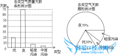 (1)根据题意得:70÷70%=100(天),答:共统计了100天的空气质量情况;故答案是:100;(2)空气质量为“优”所在扇形圆心角度数是:360°×20%=72°;“优”的天...