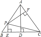 ∵从图中可知△ABC的面积=△BPC的面积+△ACP的面积.∴12BD?AD=12BC?PE+12AC?PF∵BD=PF∴AD=PE+PF∵AB=12cm,BD=6cm∴AD=122-62=63cm故这点到其他两边的距离之和等于...
