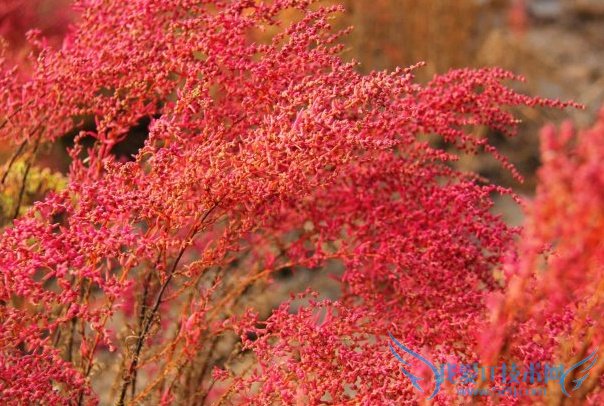 碱蓬草的主要分布地都是一些沿海地带,是一道天然的风景线,美得无与伦比。碱蓬草的美就如同朝阳,艳丽动人,在海水的蔚蓝衬托下犹如戴着紫色面纱的美丽少女。碱蓬草可以说是摄影师摄像机下的尤物。碱蓬草的价格也是比较低廉的,主要是因为碱蓬草的数量非常的庞大,而且繁衍速度非常的快。碱蓬草可以沿着海域蔓延,直至布满整片海滩。