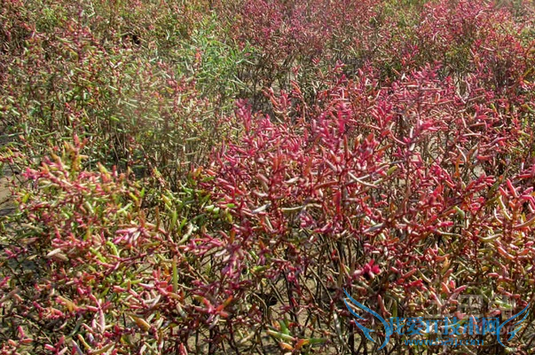 辽河位于我国的辽宁入海口,那里分布着广袤的碱蓬草,一望无际,美得惊心动魄。辽河的海滩上,碱蓬草随风摇曳,如同天上的红色浮云,美得无法言语。碱蓬草茂盛的海域是一些濒危动物的栖身之地,在我国拥有碱蓬草的海域都栖息着黑嘴鸥和丹顶鹤。各种濒危的动物选择在此处安生。