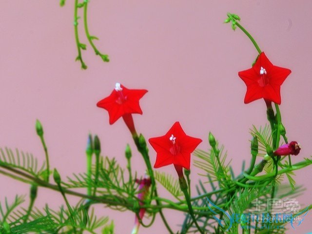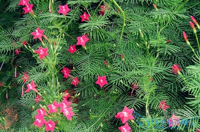 茑萝花在盛开时节,非常的漂亮。一朵朵娇艳的花朵垂吊在藤蔓上,各个姿态各异。茑萝花如此娇媚,是每个爱花的人都不可错过的美景哦。