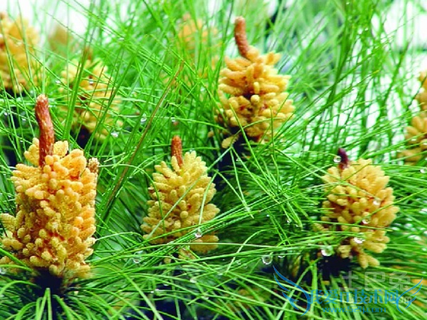 在采集松树花粉的时候我们一定要选择离工业园很远的地方来采集,树龄选择尽量在五年以上的松树但是树高的选择也要在五米左右,但是发现松树上有虫子的情况下是不建议采摘的,采摘上我们要以侧枝为主,中间的花卉应留下,在每年采摘的时候应该留下五个枝头不应该全部采摘!在花穗的采摘过后我们就可以把花穗放在容器里进行敲打和筛出花粉,在花粉的存放上要把花粉密封住,放在没有阳光直射但是干燥的地方,以免花粉受潮影响效果!