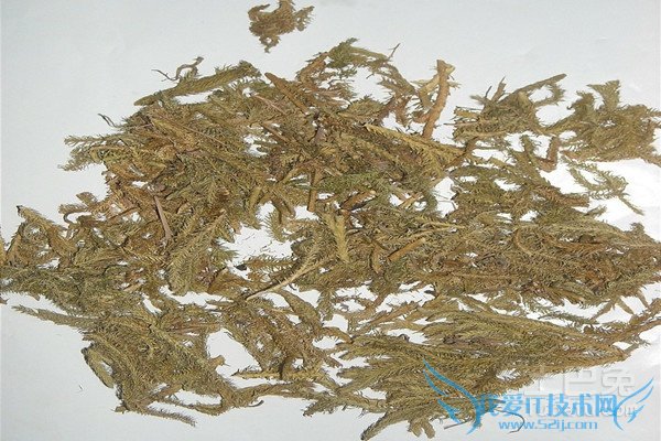 伸筋草,匍匐茎呈细圆柱形,略弯曲,长可达2m,直径1~3mm,其下有黄白色细根。直立茎作二叉状分枝。叶密生茎上,螺旋状排列,皱缩弯曲,线形或针形,长3~5mm,黄绿色至淡黄棕色,无毛,先端芒状,全缘,易碎断。质柔软,断面皮部浅黄色,木部类白色。无臭,味淡。