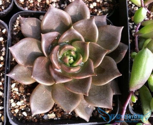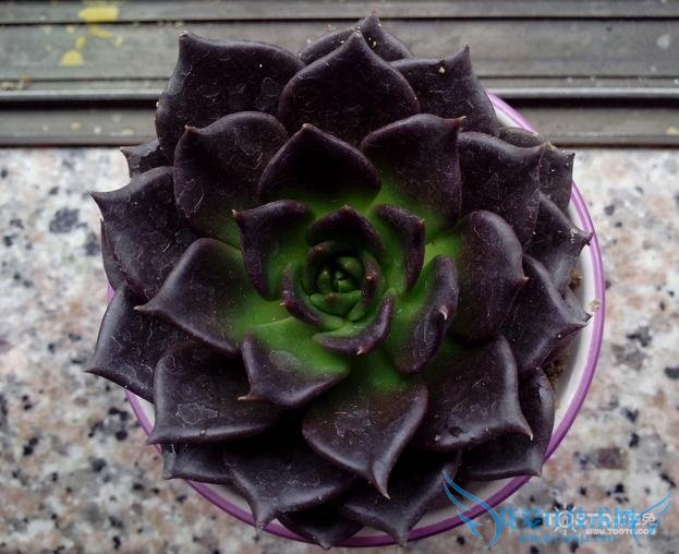 黑王子(Echeveia‘BlackPrince’)是景天科石莲花属的一种多年生肉质草本植物。植株具短柄茎,肉质叶排列成标准的莲座状,叶片匙形,稍厚,顶端有小尖,叶色黑紫。