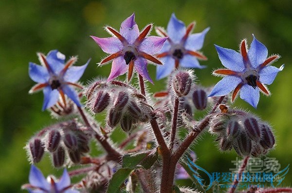 6、琉璃苣叶片和花为消解心理压力的益肾壮药,能治疗干咳,促进母乳分泌,并在初期胸膜炎、百日咳的治疗处方中采用。