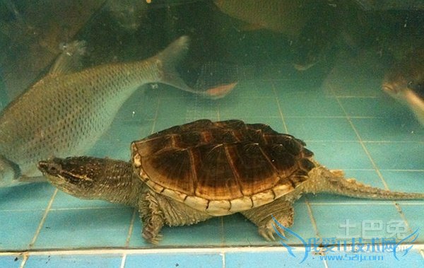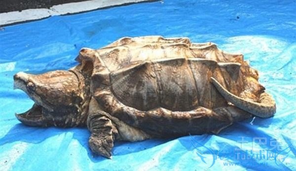 大鳄龟背甲长60-80厘米,本部于美国东南部,可以在水中很好的伪装自己,而舌头的样子象蠕虫,平时静止在水中张开嘴摆动舌头,只等待贪嘴的鱼儿上当。