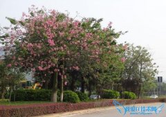 美丽异木棉,别名:美人树、美丽木棉、丝木棉。木棉科、吉贝属植物,树冠伞形,叶色青翠,成年树树干呈酒瓶状;冬季盛花期满树姹紫,秀色照人,是优良的观花乔木,是...
