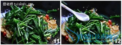 11.加入韭菜段。12.调入盐大火快炒均匀即可。