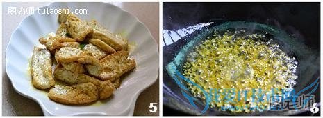 5.炸制金黄后捞出沥油。6.锅中留底油,爆香姜蒜。
