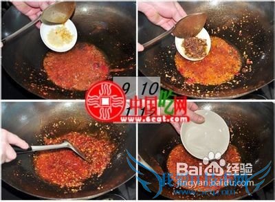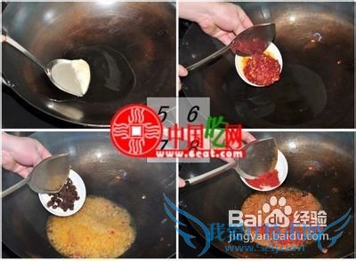 2 调料:郫县豆瓣酱、豆豉、辣椒面、花椒面、豌豆芡粉、姜蒜粒、青蒜 苗、牛肉酱(自制)