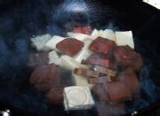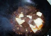 8. 下入焯水的黑白豆腐,轻轻的翻炒均匀。