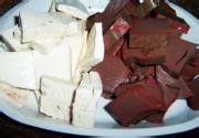 3. 锅中加入水烧开,加入盐,料酒,豆腐,血豆腐煮至5分钟,捞出备用。
