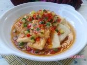 12. 最后浇到摆好的豆腐上。