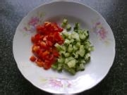 8. 红甜椒和黄瓜切成小粒。