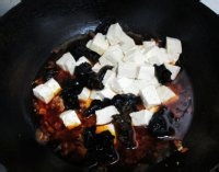7.下入煮好的豆腐和木耳,再加入适量的清水。