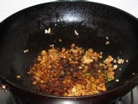 6.烹入料酒,加入酱油 糖煸炒均匀。