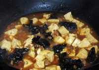 豆腐300g 水发木耳50g 肉馅100g 油适量 盐适量 辣酱适量 葱适量 姜适量 酱油适量 料酒适量 糖适量