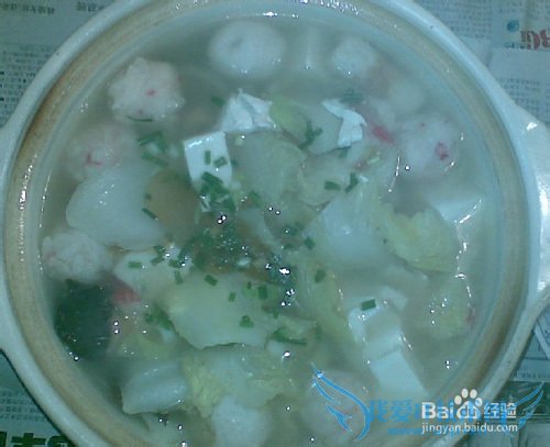 材料:干贝、鲜虾、花椒、鲜腐竹、豆腐。