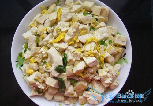 做法:1、豆腐不切,用刀平压一下压碎,蒜头剁碎、大葱斜刀切丝待用; 2、热锅凉油2勺,蒜末爆香,放入压碎的豆腐,中火翻炒,要边炒边用炒勺挤压,成碎末状,放糖、盐、胡椒粉一起炒至金黄色,放入所有的葱丝,继续炒至葱有些软焦,勾芡关火,装盘。