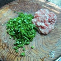 4.猪肉剁成肉泥,葱切末。