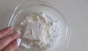 将豆腐表面涂抹上一层薄薄的生粉;
