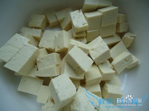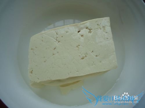 1将豆腐用盐开水泡上十五分钟(目的是去掉一些卤水味,炒时不容易炒碎)