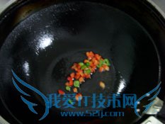 3、起油锅放入青红辣椒粒爆炒;爆香后的青红辣椒粒放在豆腐上即可。(油越少越好,青红辣椒粒只是装饰而已,油太多了就不清淡了,不好吃。)